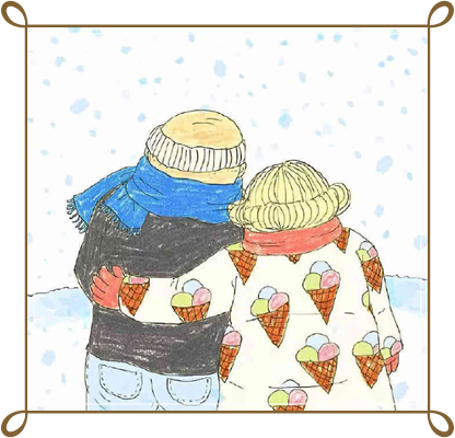 吃冰淇淋吃的满脸都是,看着彼此哈哈大笑