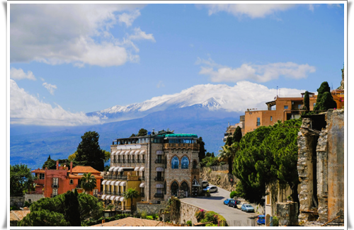陶米纳是西西里岛最美丽的地方,作为世界文化遗产的陶米纳小镇,一边是亚得里亚海无边的蔚蓝,一边是埃特纳火山喷发的烟云;她建筑在悬崖上,形成上接青天、下临大海,岿然耸立的气势,美不胜收。