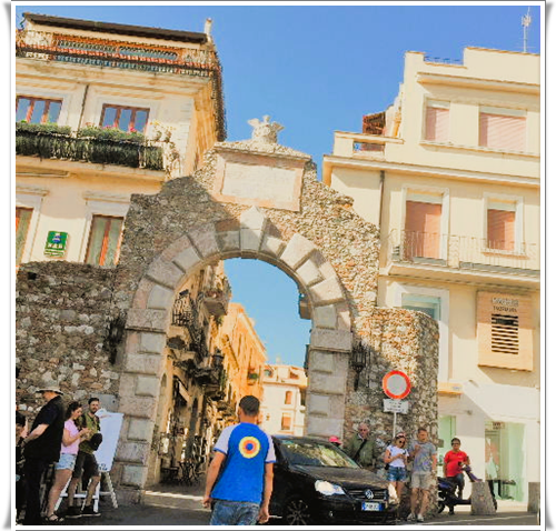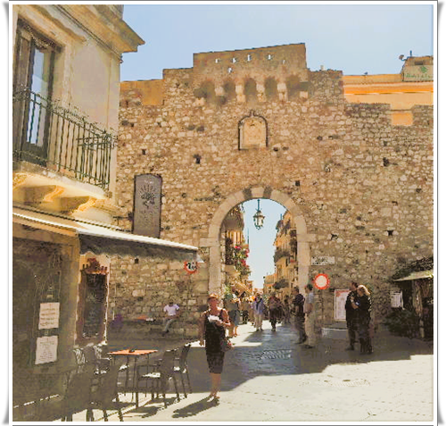 小镇历史悠久,公元前四世纪被希腊占领,之后的岁月中,凡在地中海称霸的列强,都有份染指它。包括罗马人、拜占庭人、诺曼人、萨拉逊人、阿拉伯人、法国人和西班牙人。通往城里的墨西拿城门是1808年法国人修建的,上面有以斐南迪四世名义发的碑文和波旁王朝的族徽。这是进入陶尔米纳的第一座门。