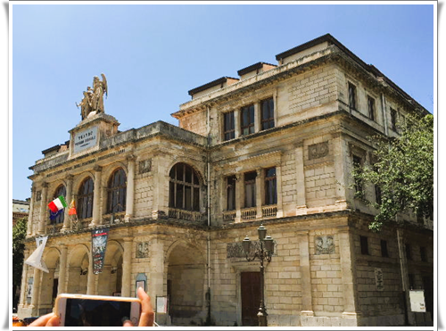 我们赶上了中午12点天文钟敲响,里面的人物会动。之后4人乘双层游览巴士的蓝线绕墨西拿市区一圈,约45分钟,末班车为下午2点,所以我们没有下车,下午1点多又回到了天文钟。我们继续逛了一小时就回邮轮了。