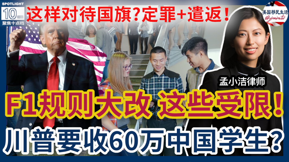 新规!F1规则大改!这些行为都受限!OPT/CPT皆影响!中国留学生的春天来了?川普要收60万中国学生?川普签字:这样对待国旗将定罪+遣返!将DUI者遣返!国会最新提案!|美国移民生活202508028