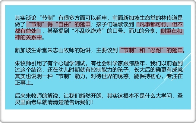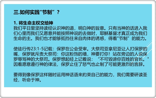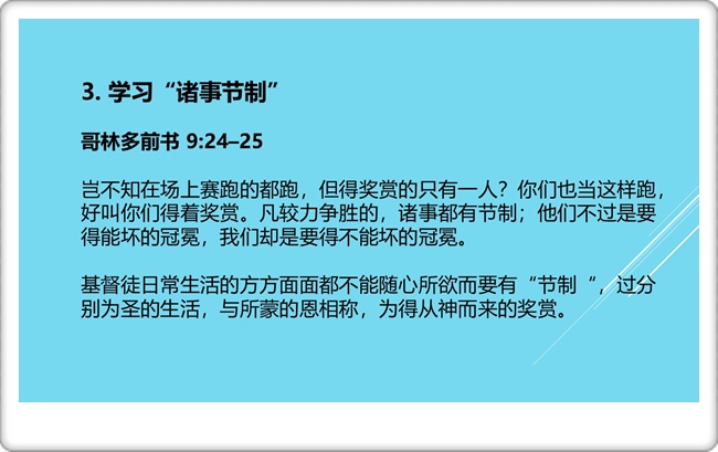 团契分享:基督徒生活中的“节制”