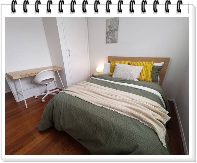 次卧布置也比较容易(还利用左边空位,放一张孩子学习的小桌子)