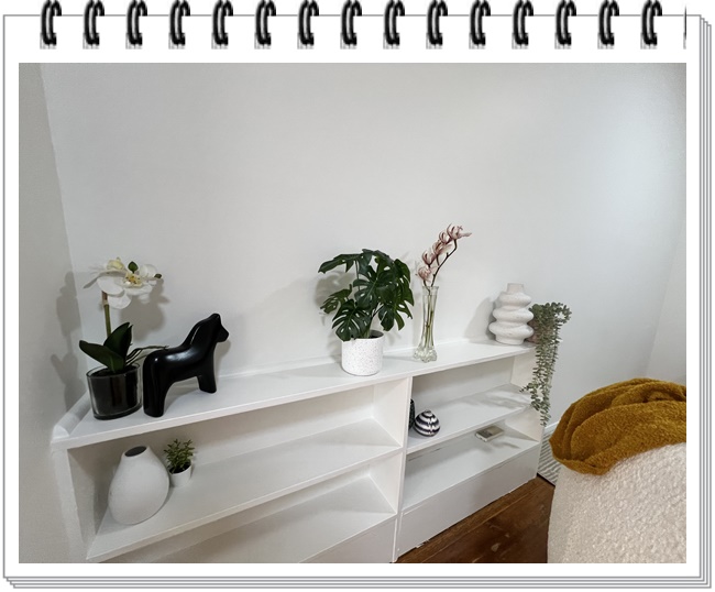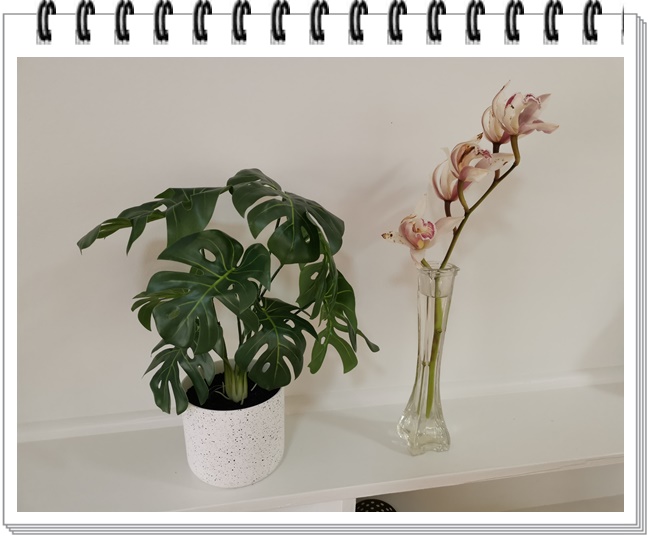 原先的装饰比较单薄,自己在后面加上一个花架和现代风格的花瓶