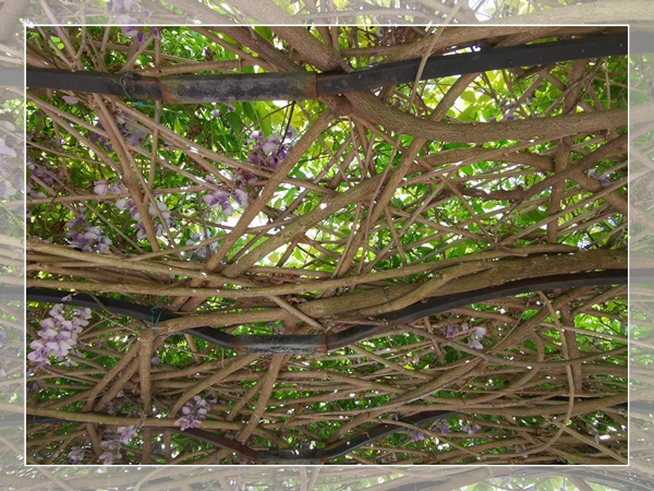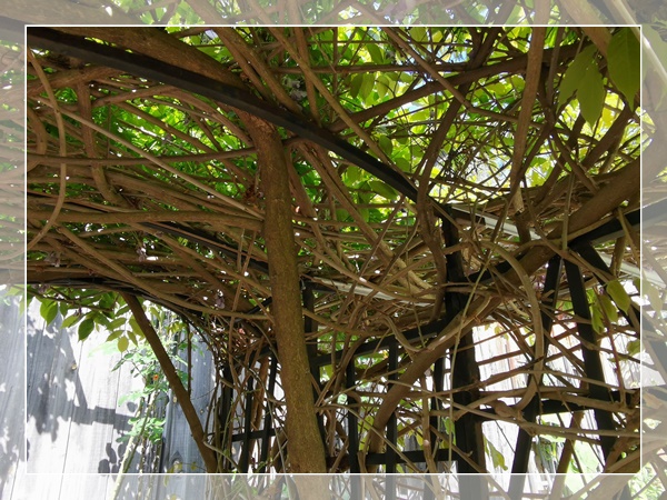 紫藤的藤曼很强大,不下几年就自己形成一个结识的框架,这是我的紫藤现在的状况:
