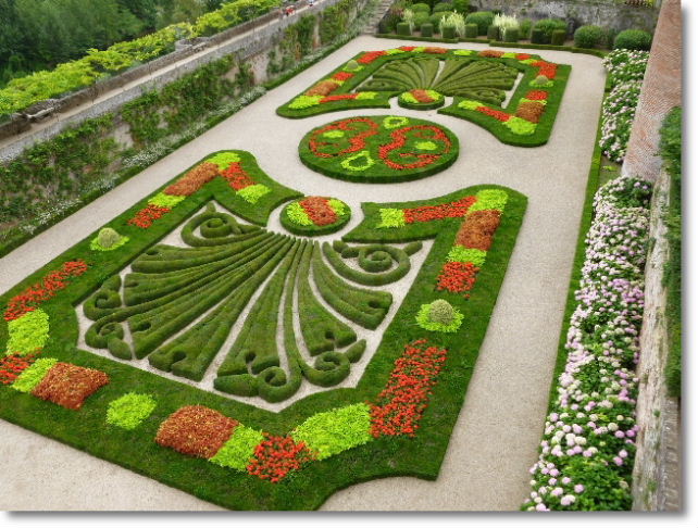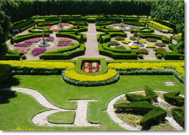 法国花园类别中的传统花园,图案外围是绿篱,内部是花卉