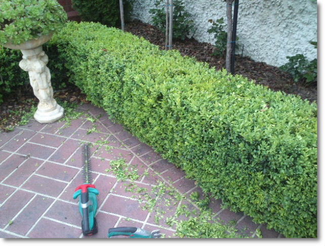 以前修剪绿篱是用园艺大剪刀,咔嚓咔嚓手工劳动。现在有很多的电动修绿篱的剪刀,非常快,非常整齐。可谓“磨刀不误砍柴工”,有个好工具会节省很多时间和力气。