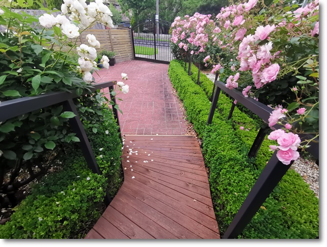 可能你发现绿篱的颜色比较单调,大多都是一种绿色。你会想要是能开花,五颜六色多好?也是有一些绿篱可以做成带色彩的,只要注意选择树种就是。像Aussie Box(澳洲盒子)就是带有一点小花的。一些地方用蔷薇(爬藤玫瑰)等开花植物做绿篱,到了春天,非常漂亮,当然内部一般要做架子。澳洲还有一种lilly pilly的树种,常青树,到了春天小树芽长出来,树篱变成粉红色,到了夏天开白色小花,又是一种景色,也是很受欢迎的。