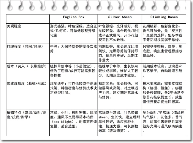 三种“绿篱”的比较