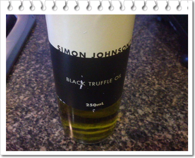 这个意大利火腿片Prosciutto有点像国内的“金华火腿”,但这个东西可以生吃,非常鲜美。大多数Prosciutto是切成薄片,因为价格比较贵,很多包装好的Prosciutto只有100克。据说意大利火腿片Prosciutto最好要配松露油Truffle Oil,松露也是非常珍贵的一种菌类植物,生长在地下,很少有满足松露生长环境,还要培训一只猪或者狗来嗅这个味道,才可以找到深藏地下的松露,所以寻找松露也不那么容易。松露非常贵,做成的酒,巧克力等制品都非常考究,松露油250克,要30澳元,我相信当然不是用松露榨出来的,可能按照一定的比例泡出来的,非常香。