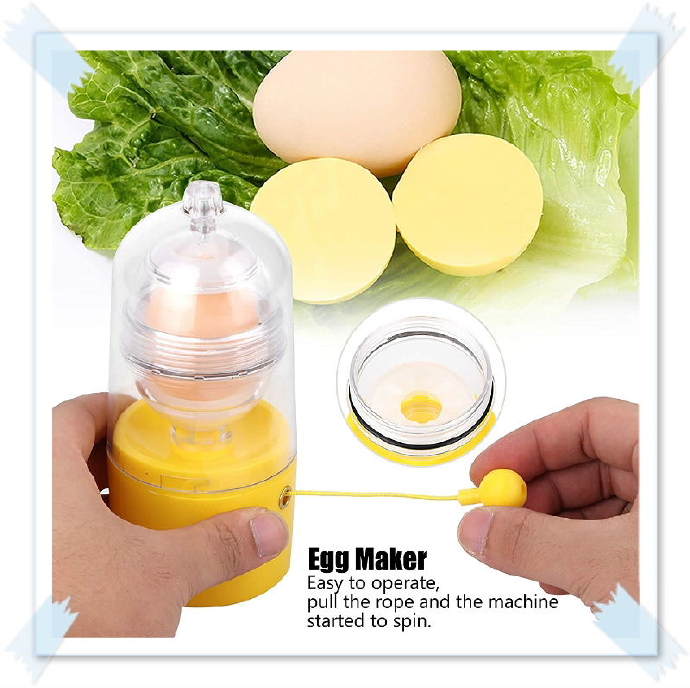 日餐、韩餐的很多菜肴、汤面中,会发现有整个和半个的鸡蛋,大体上有两种:一种是流黄的鸡蛋;另一种是看不见蛋白和蛋黄的鸡蛋,也就是说整个鸡蛋一种颜色。我一直有这个疑问:这个鸡蛋是不是打碎后,充分混合,再灌到一个鸡蛋形状的摸具?其实不然,这次我看到一种制作这种“混蛋”的器具,商家叫“扯蛋器”。因为这个器具并非商业餐馆之用,是一种手动拉扯发条,利用离心力来混合鸡蛋中的蛋白和蛋黄,使之在蛋壳不打碎的情况下,将鸡蛋内部的蛋白和蛋黄混合。因着好奇我12块钱在网上买来做了一些实验,很有趣。