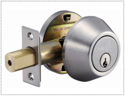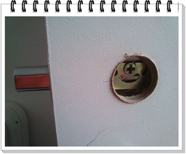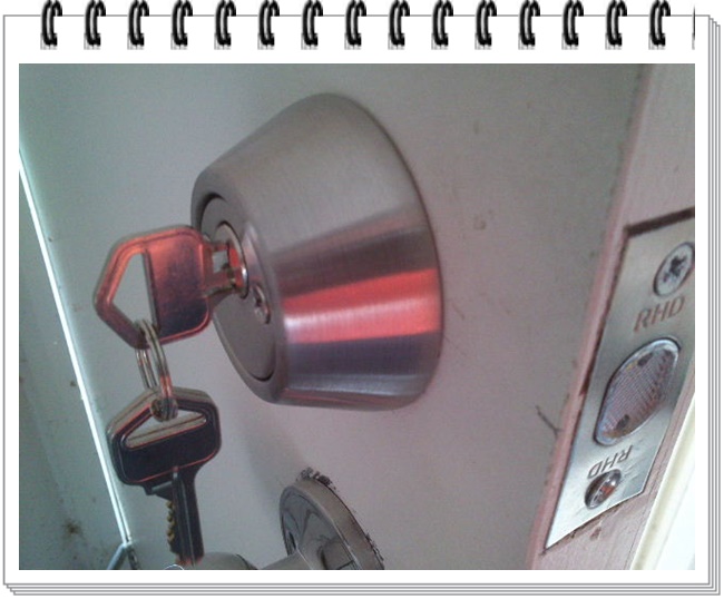 这种情况相信很多朋友家都会遇到:现在还有很多朋友在大门入口用的是一般带钥匙的锁,也就是上文介绍的Entrance lock,门内侧有一个保险扣,开门用钥匙,进门把保险扣打上,别人就进不来。大家注意这个锁的锁舌是斜的,所以关门时,会自动锁上,出门很方便,不必用钥匙上锁(只是在进门时用钥匙)。但是这个结构的锁有一个弊病:在外面的缝隙里用一个小铁片,或者什么塑料卡一捅,锁就打开了。我不是吓唬大家,这个锁是带有很大的安全隐患。我这个投资房的大门就是安装这种斜锁舌的锁,经过数年风吹雨打,门和门框之间的缝隙越来越大,假如外面的铝合金保安门不上锁,只要用一张银行卡,就可以进门!所以我准备安装一把里外都可以用钥匙的安全锁DeadLock。
