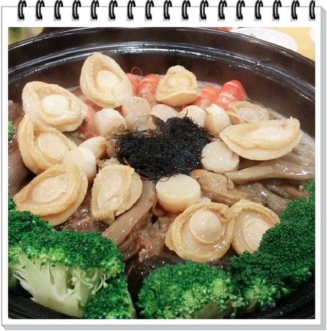 我们亲家这次的这个“大盘菜”有发菜,鲍鱼,芋头,烤肉,猪爪,萝卜,香菇,白菜等8样食材,一层一层放好,加高汤用小火炖4小时,再烧一个白饭,炒一个青菜就做好这道菜。人们可能顾名思义,以为“大盘菜”就是很大一个锅子,大家猛吃猛喝,其实不然,我们这个锅子也就是20多公分的普通平底深锅,几个人不多不少。但食物很丰富,有荤有素,各自挑选自己喜欢的食物,一层一层捞下去,最后可以品尝一点很浓厚的汤汁,大家在一起其乐融融。