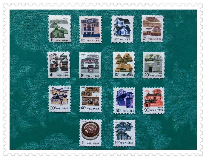 这套令很多集邮爱好者不屑一顾的《民居》普票,是原邮电部于1986年4月1日起开始发行,至1991年6月11日结束,共计发行21枚。面值设置上分别是从1分至2元,共计21种面值。从面值设置上分别是1分(内蒙古)、1.5分(西藏)、2分(东北)、3分(湖南)、4分(江苏)、5分(山东)、8分(北京)、10分(云南)、15分(广西)、20分(上海)、25分(宁夏)、30分(安徽)、40分(陕西)、50分(四川)、80分(山西)、90分(台湾)、1元(福建)、1.10元(浙江)、1.30元(青海)、1.60元(贵州)、2元(江西)等21种面值。