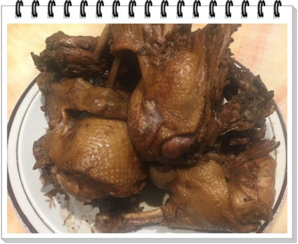和上面“啤酒鸭”差不多的做法,只是不放啤酒,放料酒,足够的茴香、桂皮、大料。