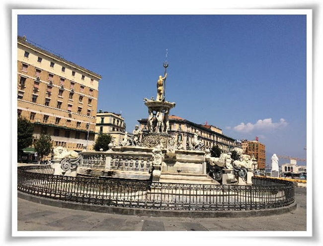 回到那不勒斯城区所剩时间不多,我们只是在靠近游轮码头附近的老城堡周围逛逛。据说意大利的比萨饼是起源于那不勒斯,几乎每家餐馆都写着“正宗比萨饼”。我们就挑选一家品尝了一个正宗的炭火那不勒斯比萨饼(Napoli Pizza),这和我们以前见到的比萨饼不一样,奶酪是在饼的夹层中,味道真是好极了,还送我们一些意大利火腿片,价钱10欧元一个也不太贵。