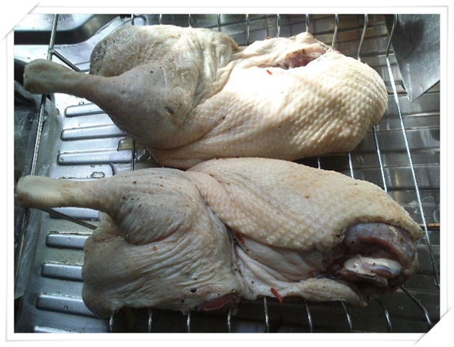 3. 对于上面的第4点“浸泡”,我认为可能腌制的鸭子比较咸,经过“浸泡”可以减少一点咸味(可能还有别的原因),还要在晾干,比较麻烦,所以干脆不要这一步。