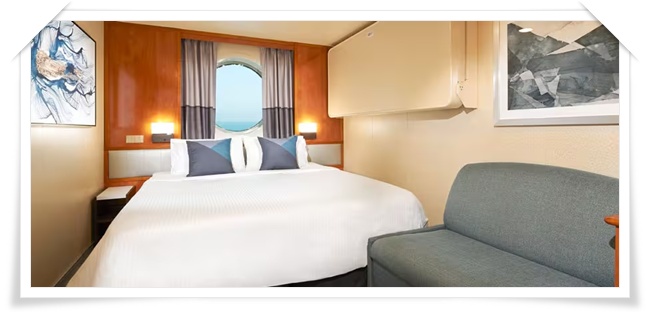 首先我们大致上了解一下邮轮上最普通的三类舱房类别: