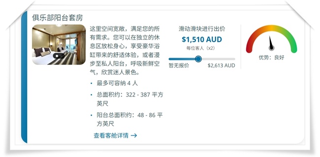 个人说明:有次我们阿拉斯加邮轮同行朋友,在登船时仅多加500澳元,便成功升级至顶层豪华套房。