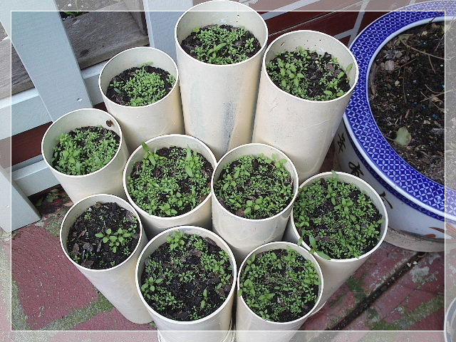 自己家里能够种荠菜,也是一种乐趣,因为我们自己种植自己吃,不会浇灌一些化肥激素,高兴了随时可以“挑荠菜”。下面是我用这个直立圆筒种植器试种荠菜的经过,当然比较少。这个直立圆筒种植器,我以前种过菠菜,香菜,苋菜,小白菜,芥菜,君达菜等很多小菜,有的是用“间苗”的办法收割,有些是“剃头”方法收割,有的则是一次性收割。这次忘记换上新土,所以开始长出来的秧苗似乎不像荠菜,后来就陆陆续续长出很多。
