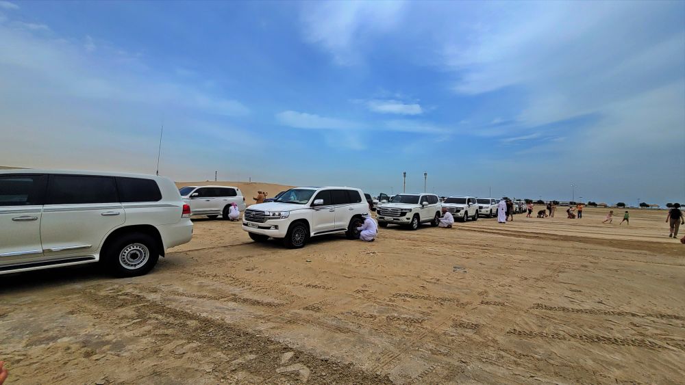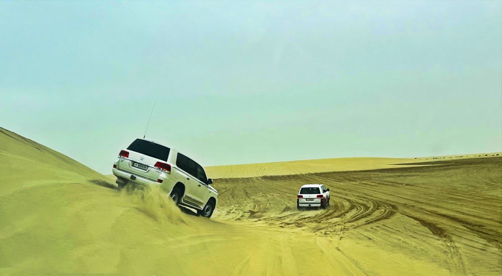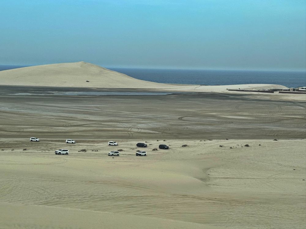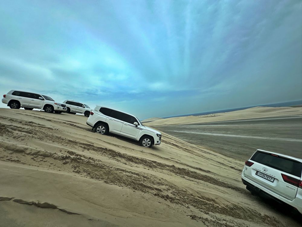 乘四驱车沙丘冲浪是令人兴奋的沙漠之旅,沙漠创造了一个不断变化的、起伏的景观,多哈南部的沙漠是令人难忘的冒险背景。冲沙的所带来的心跳不亚于在游乐场玩一个刺激项目,一路上下翻滚,颠簸起伏。看着并没有很陡峭的沙丘,当司机踩满油门全速前进时,似乎能感受到轮胎在砂砾上的丝滑。眼前的沙子像海浪一波一波的盖过玻璃,快速的失重感交织着轰鸣的引擎声让人心跳爆表。