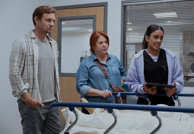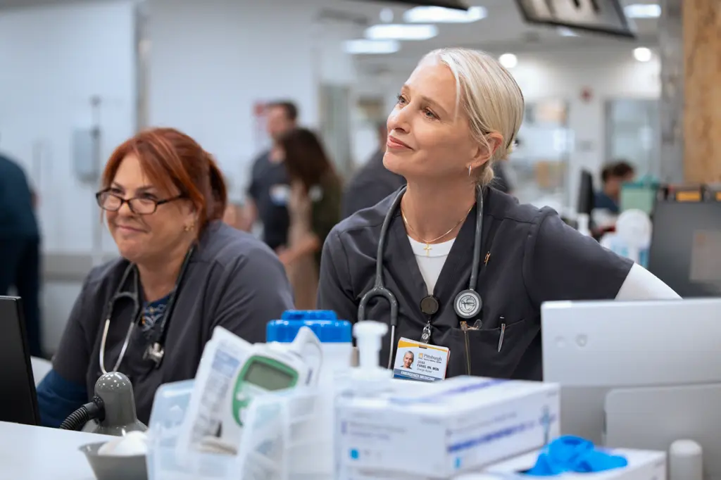 人物关系方面,医生罗比与护士长达娜之间的紧张关系贯穿始终。他们彼此理解,却难以表达,这种沟通障碍在压力下被不断放大。达娜由 Katherine LaNasa 饰演,她不仅维系着急诊室的运转,也成为少数能够直面罗比问题的人。她的警觉与强硬,并非性格使然,而更像是环境塑造的结果。