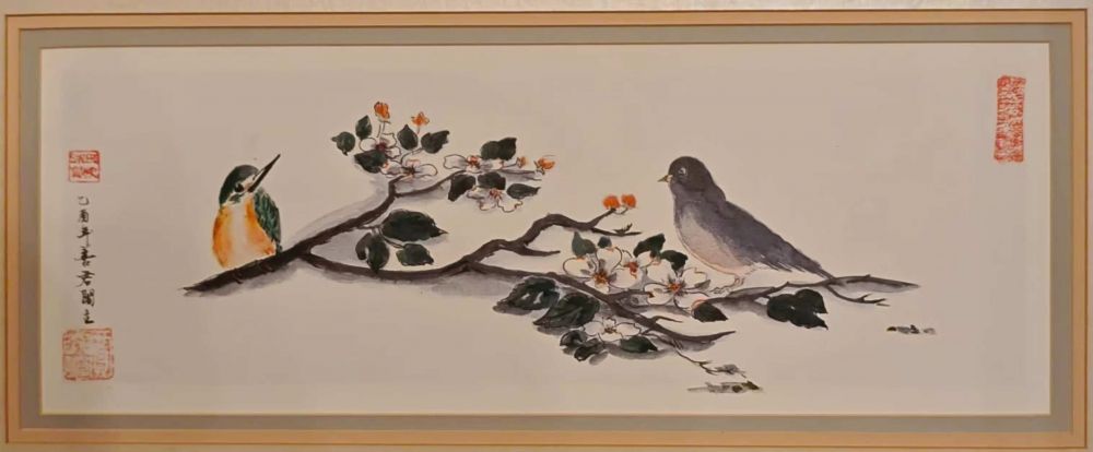 二十来分钟的路程,转眼就到。疯子夫人出门相迎,疯子赖在屋里,满世界的混乱。桌上尽是笔墨纸砚,说,老王要的画完成了。张眼一瞧,不错哎。这疯子是个绝顶聪明的人,几十年古董翻腾,竟能把画也玩得如此水起了。我的字买入的墨汁收到后,也帮老王写好了,三幅字有一组是换了行书和隶属写成的,虽然还是玩家业余的水平,毕竟还是认真的。认真也有代价的,光是四下里收寻合适的镜框,就能弄得四脚朝天。一般的镜框还看不上,非要在古董旧货店里找见古朴敦厚的。这就要命得很。只能去“撞见”了。我写好的字连同两幅收来的画丢在车尾后箱里没有拿出来,只给疯子看了照片。疯子看后又开始惊炸,叽叽歪歪地取来印章,要我在他的画作上先落款,再盖章。事毕,四眼张望,回头对视后,笑语朗阔:敢情两个业余的,还能玩两把。