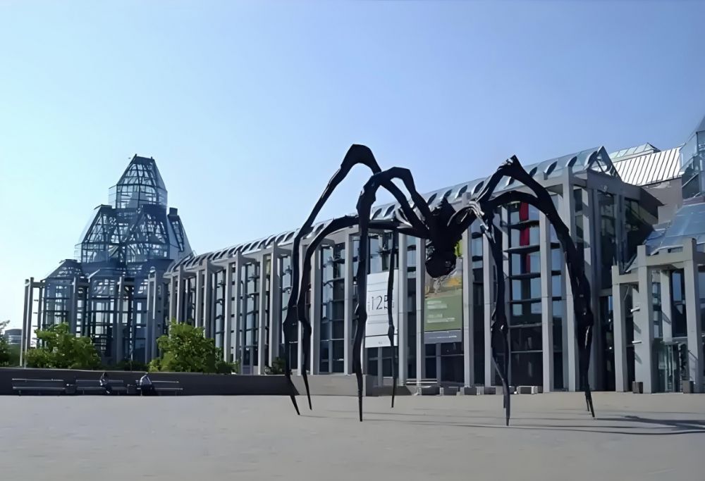 • “一只巨型的蜘蛛”:这是极具震撼力的意象,很可能对应渥太华国家美术馆前的雕塑《Maman》。蜘蛛在诗中并非恐怖之物,而是一位“守护者”,它的网不仅是艺术的联系,更是文化精神的传承。