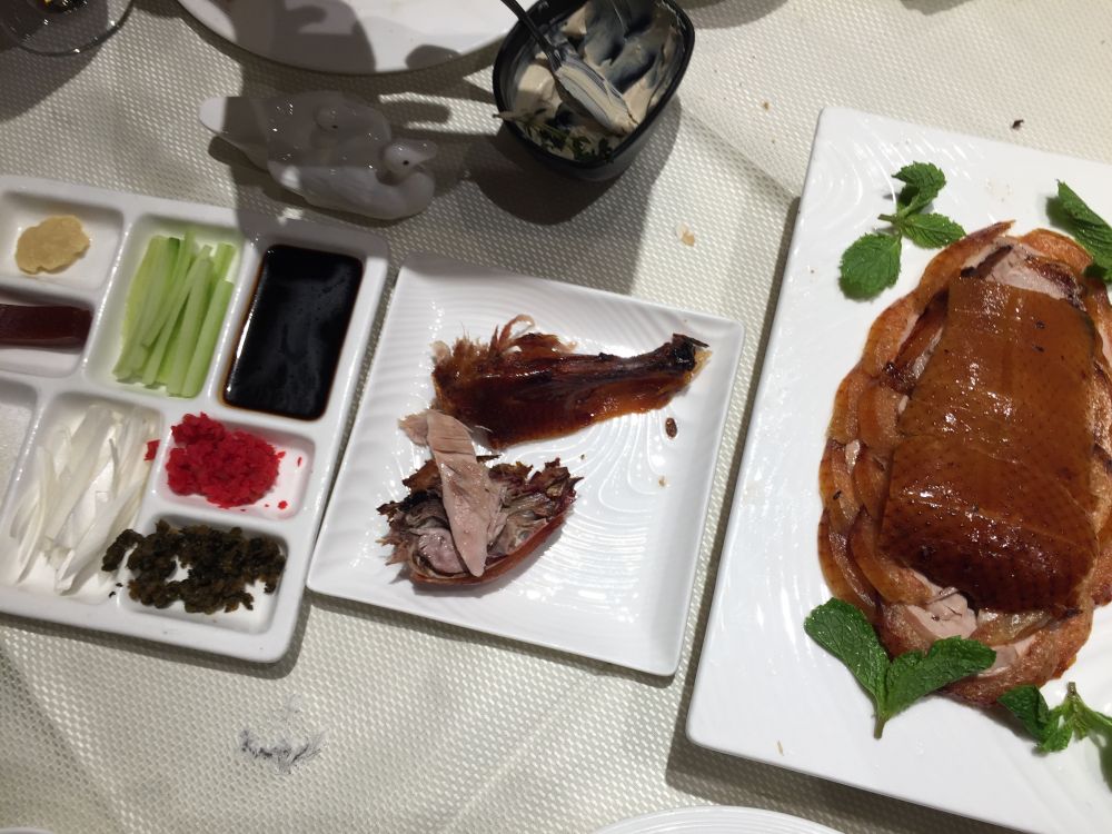 每次去北京,烤鸭无论如何也要吃的,全聚德,九华山等都吃过几次了。有朋友推荐了四季民福,排队近两小时才轮到我们。