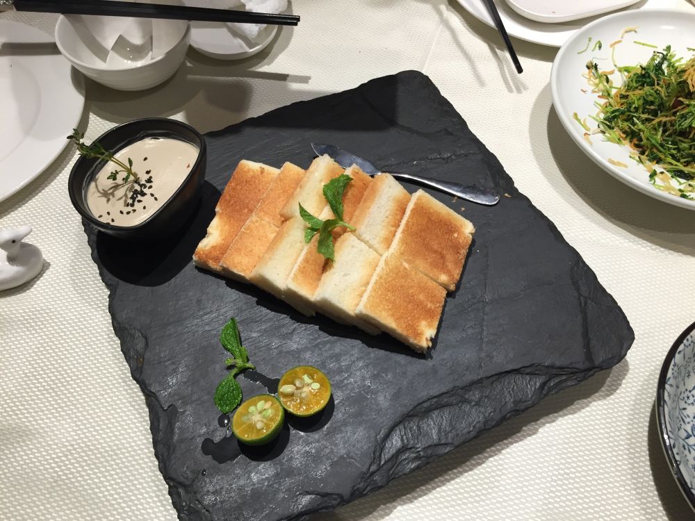 这个鸭肝酱涂面包片特别好吃