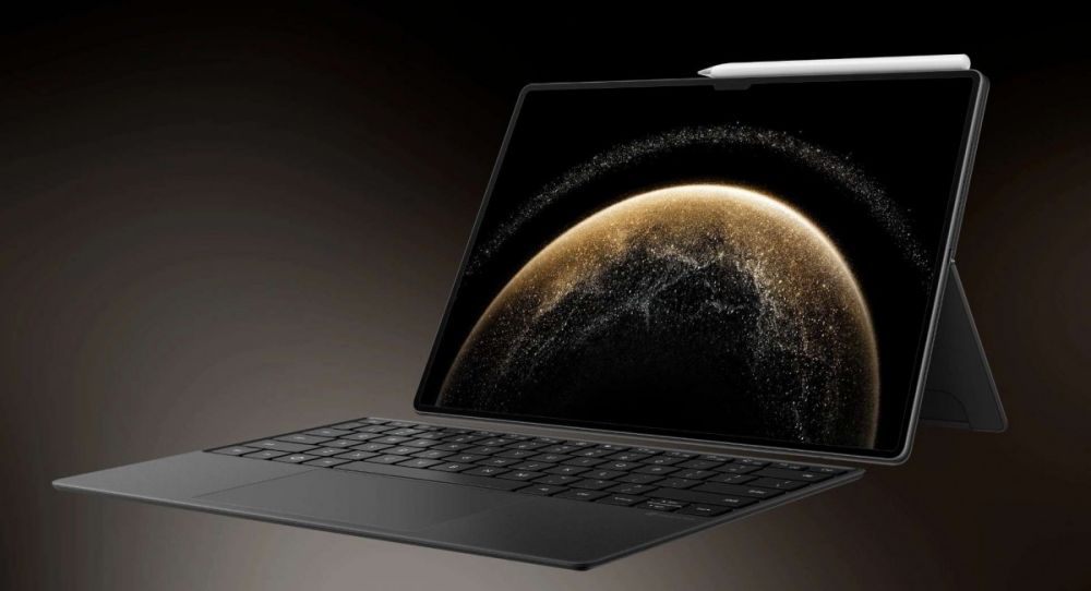 另一个值得关注的特点是其官方配件键盘是蓝牙键盘,有内置电池,靠平板的背板反向无线充电,而不像iPad靠物理接触的三个磁吸点给键盘供电: