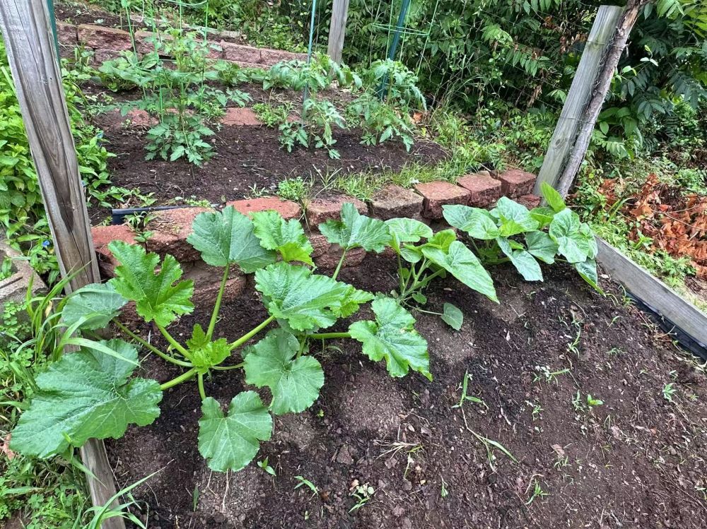 因为今年回国一个多月,直到五月底才回美国,所以今年蔬菜种得晚了点。转眼三个星期过去了,菜园里的作物才刚刚露出点成形的架势。我翻出去年的园艺笔记,发现去年6月20号西葫芦已开始采摘,黄瓜也开张营业了。今年这两样蔬菜还在奋力生长中,估计还得等上两个或三个星期,才能陆续见到成果。