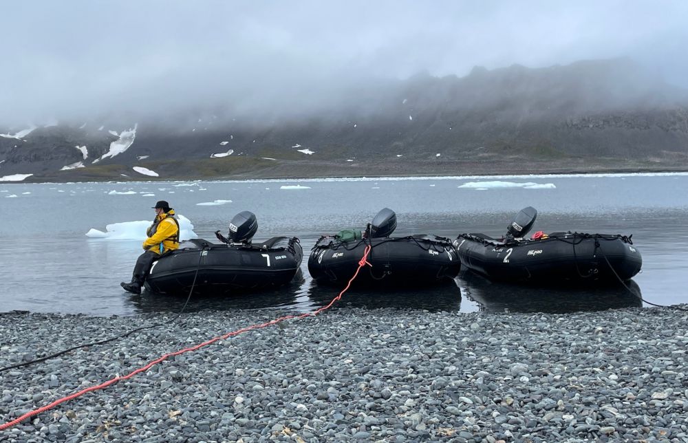 然后,冲锋舟载我们上破冰船。今后几天我们的南极巡游和登陆小岛,都依靠这种冲锋舟接驳/交通。