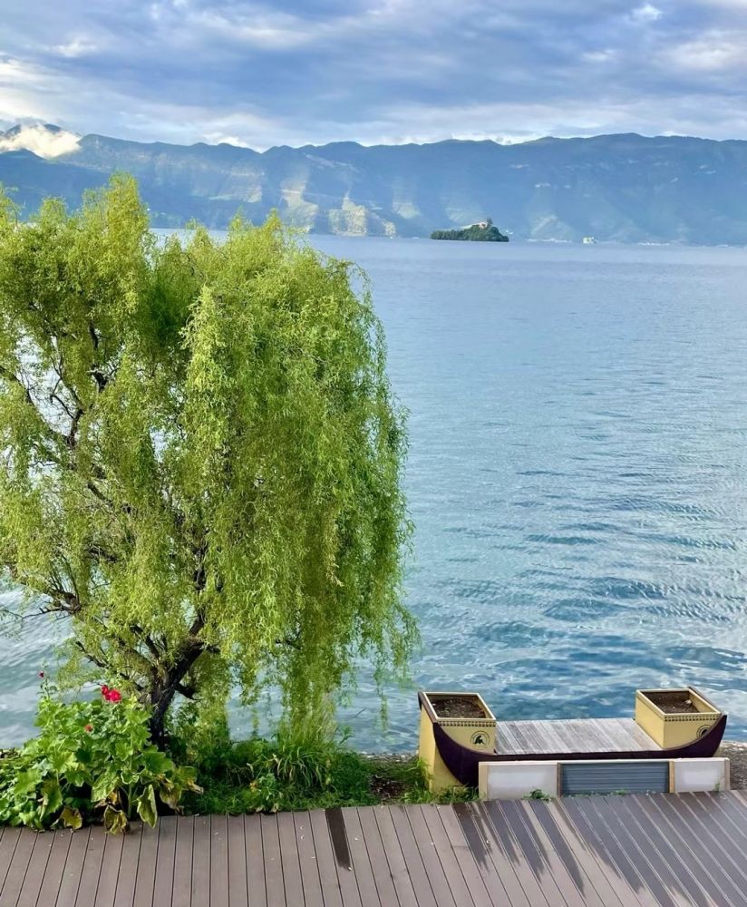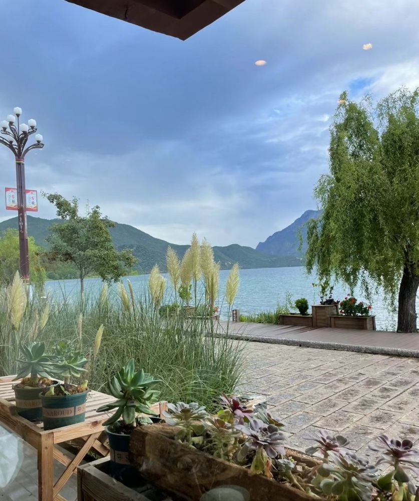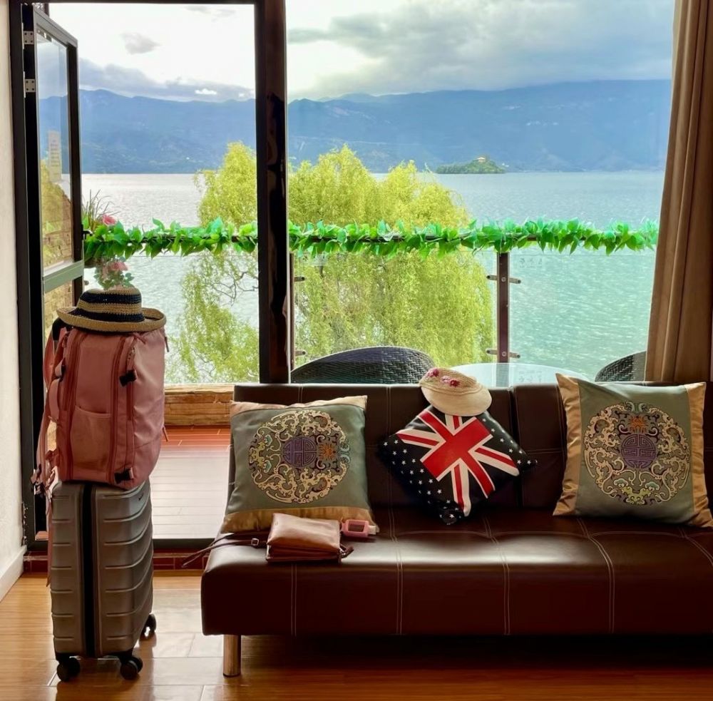 出发前,弟妹就安排妥:“就住海景酒店,坐在凉台看泸沽湖,边吃茶、吃瓜子,巴适得很。”我一个混吃乘凉的,当然咋个整都要得。