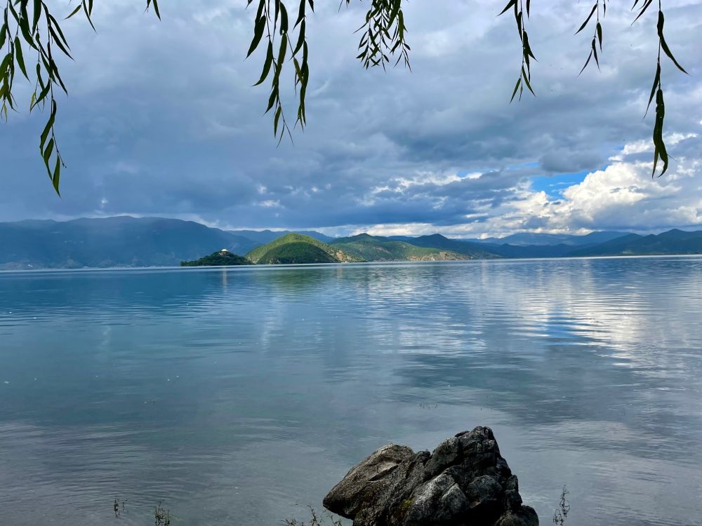 泸沽湖海拔2690米,是一高原淡水湖。那几天的最高温度才21摄氏度,成都都超过40度。