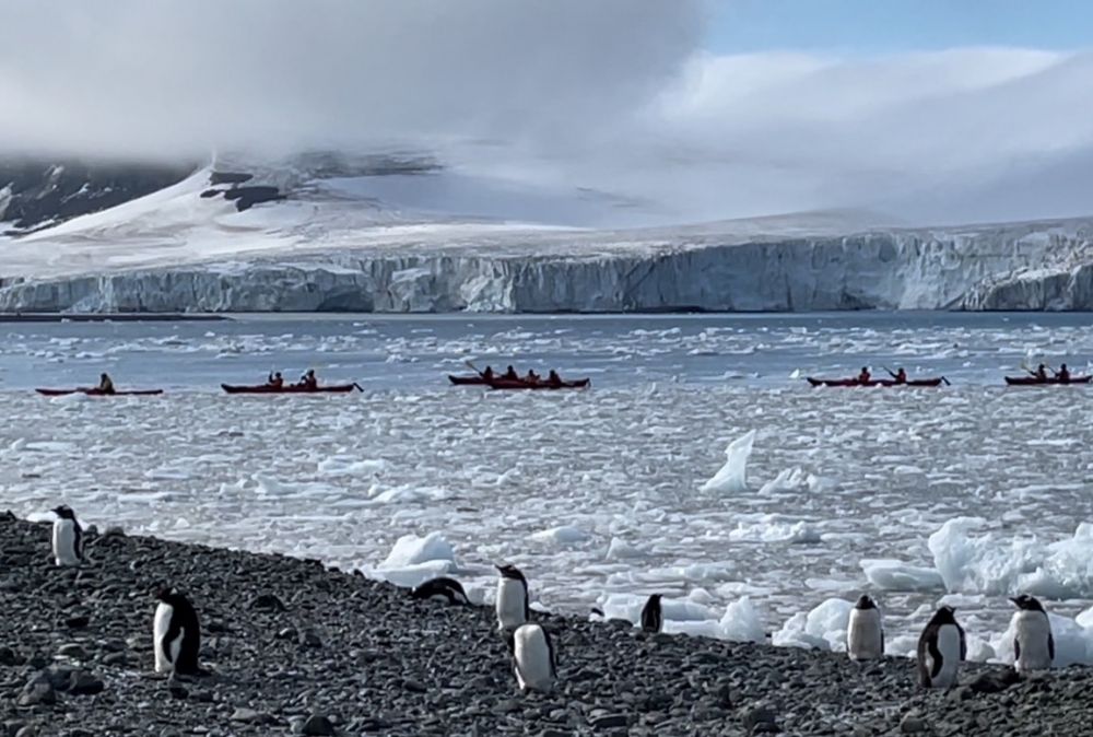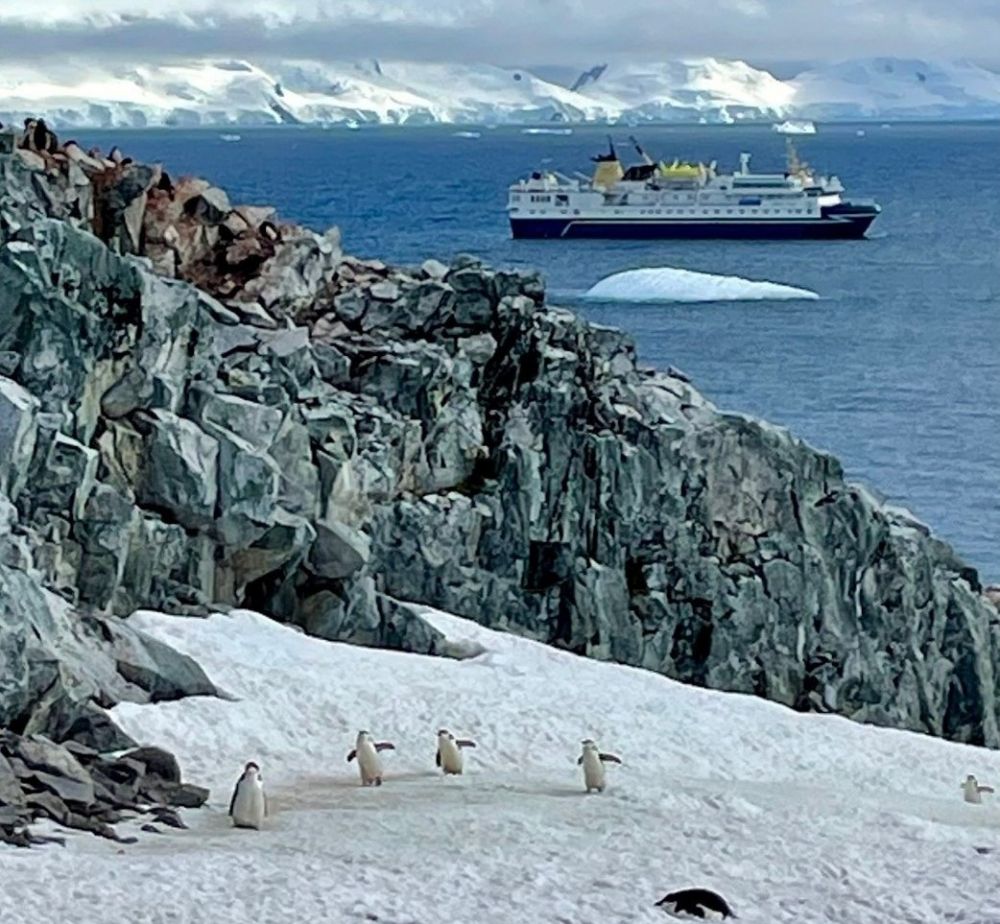 破冰船Ocean Nova载上我们,晚上快速前行,白天停泊一个海湾。我们每天上午乘冲锋舟上一个岛,爬山、游逛、造访南极主人:企鹅、海豹......