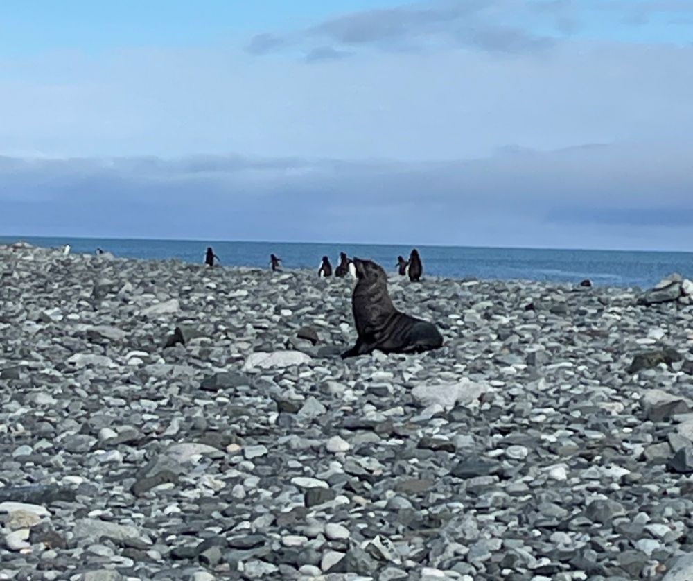 每次上岛我都会跟着人群走,因为许多岛上有海豹,海豹、企鹅共存。海豹很凶的,会攻击人。船上规定我们离它们20米,如果它们靠近,不要跑,人跑不过它们,用登山杆赶它们。