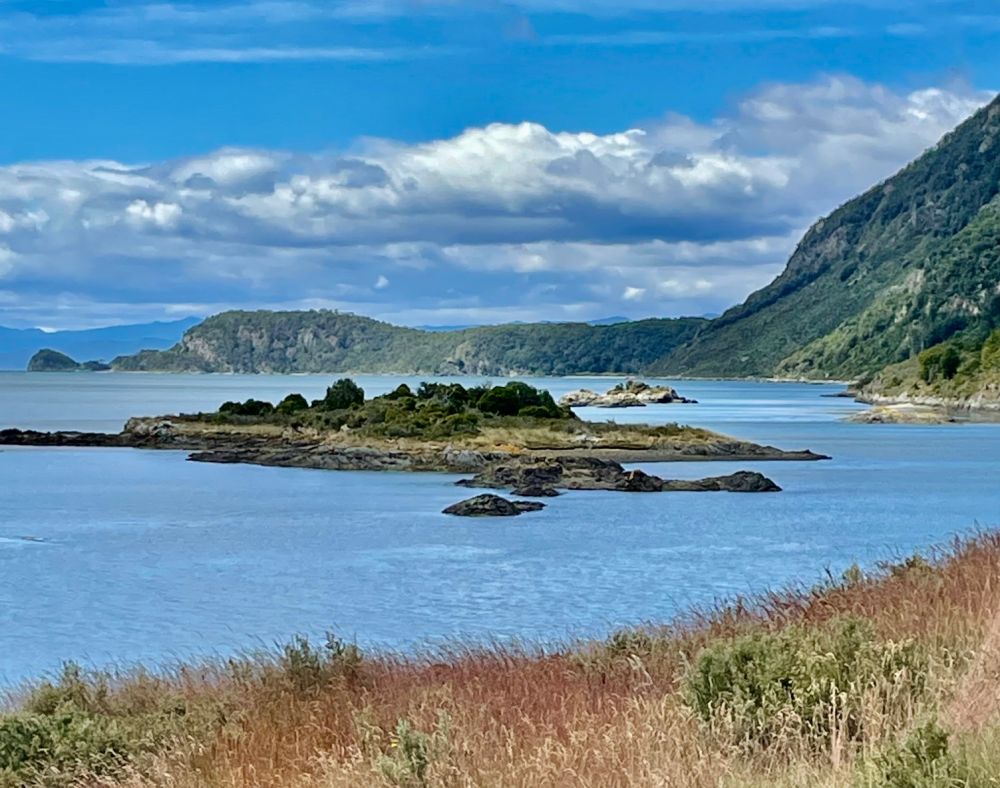 罗卡湖,是火地岛公园的标杆景点。沿湖有一段步行道,一路看水、看船、看岛、看蔓延到天边的青山。