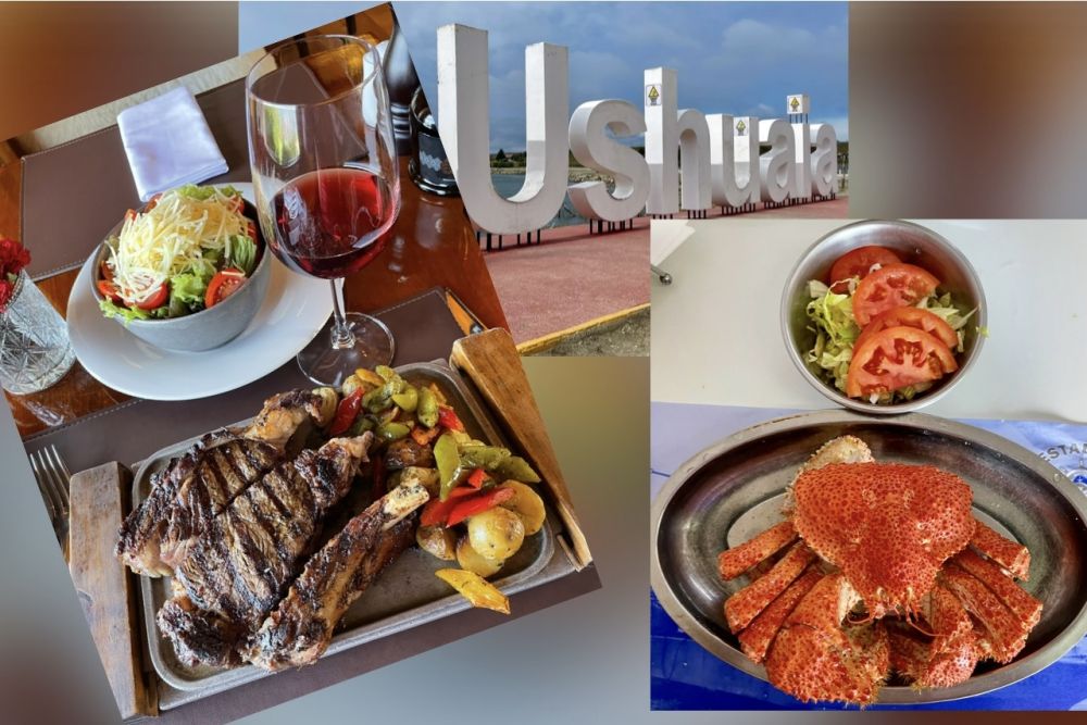 乌斯怀亚的霸王蟹好像很有名?我在酒店推荐的餐馆点的单人蟹餐,一只霸王蟹和一小碗沙拉,30,000ars(阿根廷币)/$27。