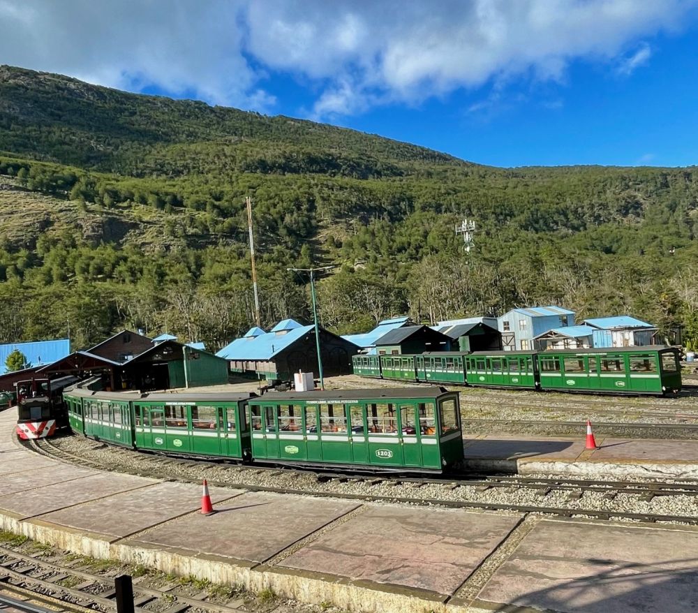 火车载上一群游客悠悠驶向“世界尽头”。火地岛国家公园被誉为“世界尽头”。据说火地岛早年是流放犯人的,火车则是修建来载犯人进山伐木和运输木材的。