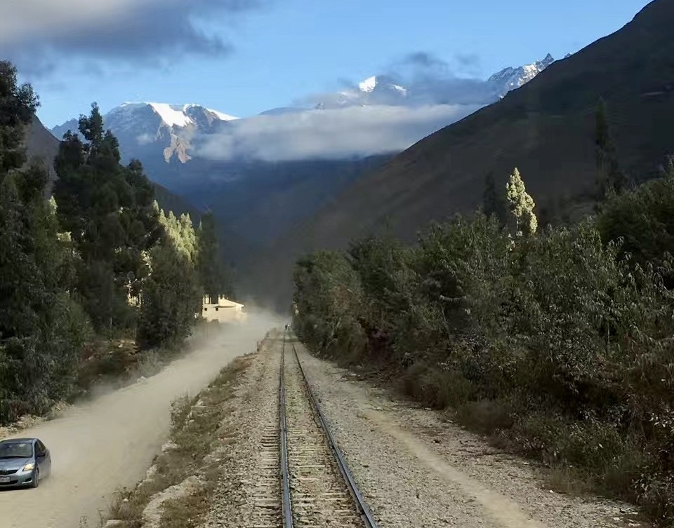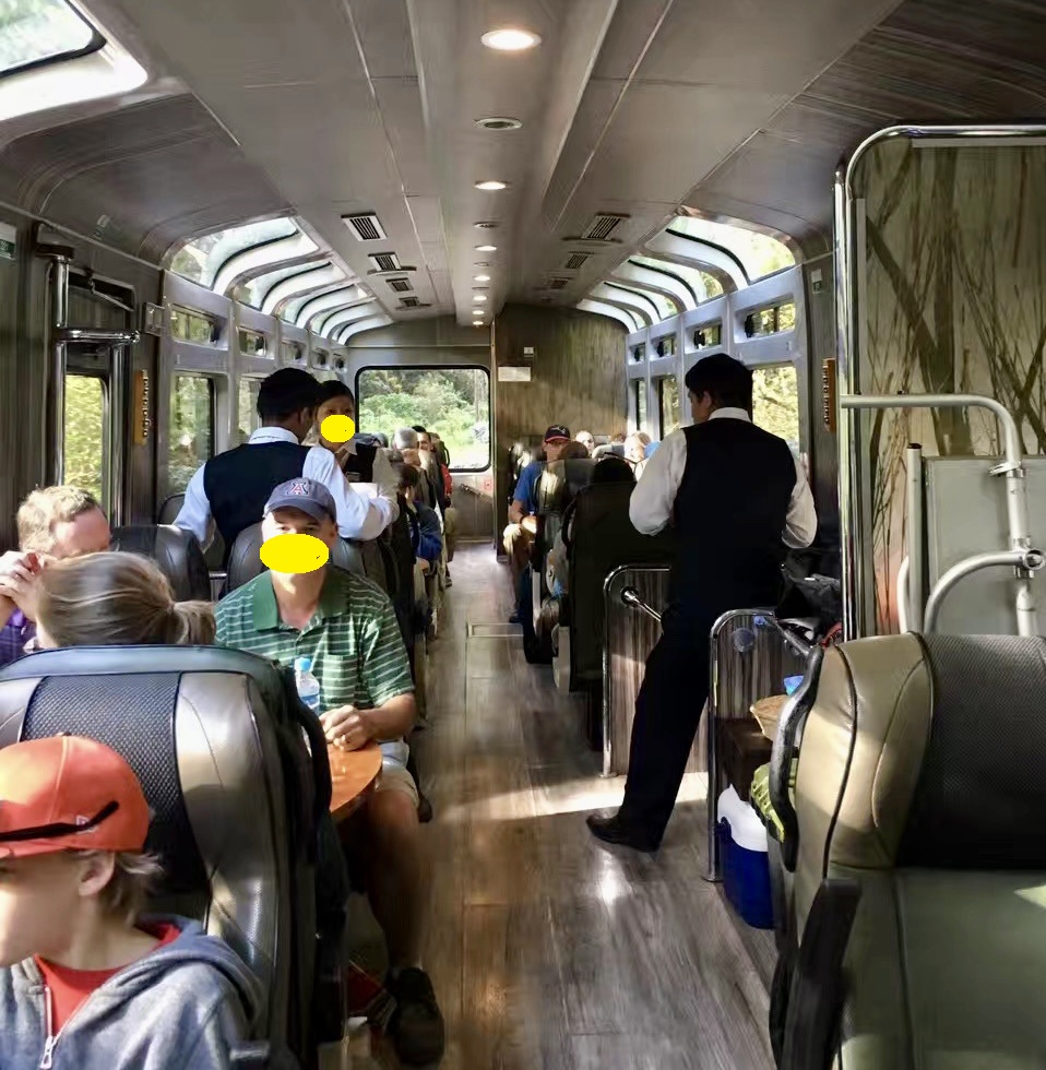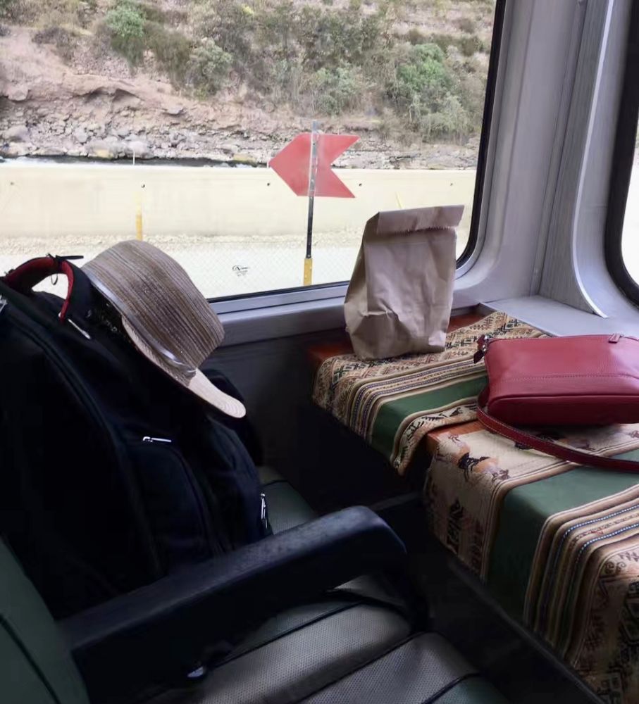 一大早,观光旅游火车带上我们一群早鸟儿慢慢悠悠奔向马丘比丘。售票系统很精彩地把一群美国佬安排在最前一节车厢,满车美式英语横飞。我的位置幸运地被安排在第一节车厢的第一排,没有车头,大片玻璃外景物层出不穷。