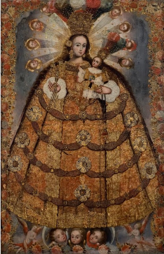 利马是印加和欧洲文化交错、合并和共体发展的中心。照片里,头顶金光闪闪象征太阳,圣母和耶稣如同印加人信奉的太阳,裙子是山脉......
