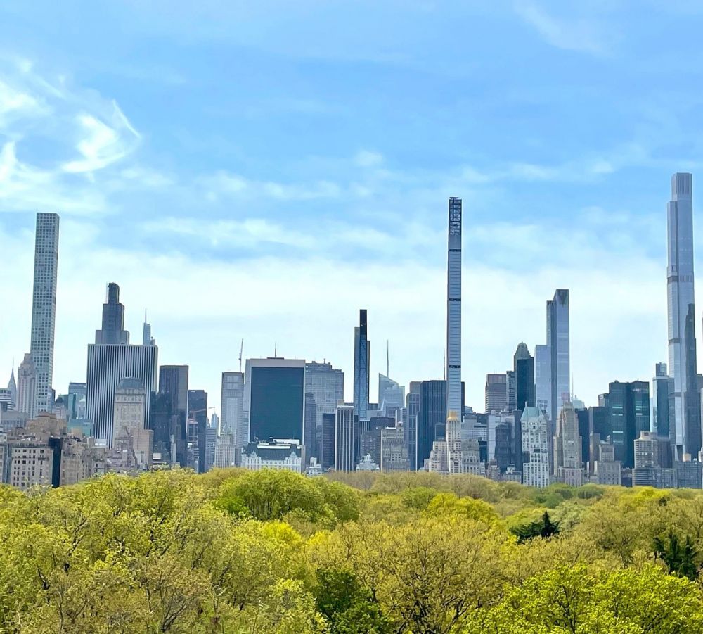 左边照片,拍摄于大都会艺术博物馆楼顶,包揽中央公园南端著名摩天楼。左边最高楼,照片里第3高楼,是公园大道432号/432 Park Avenue。它的左边冒出一细尖尖的楼,有点远,那是美丽的克莱斯勒大厦Chrysler Building。照片里第二高的楼,中偏右那栋细长的楼,是全球最细摩天楼111 West 57th大楼,及斯坦威大厦。照片里第一高楼,最左边是central park tower,1550'/约472米高。