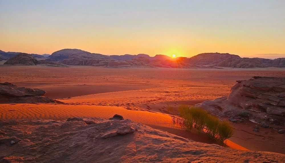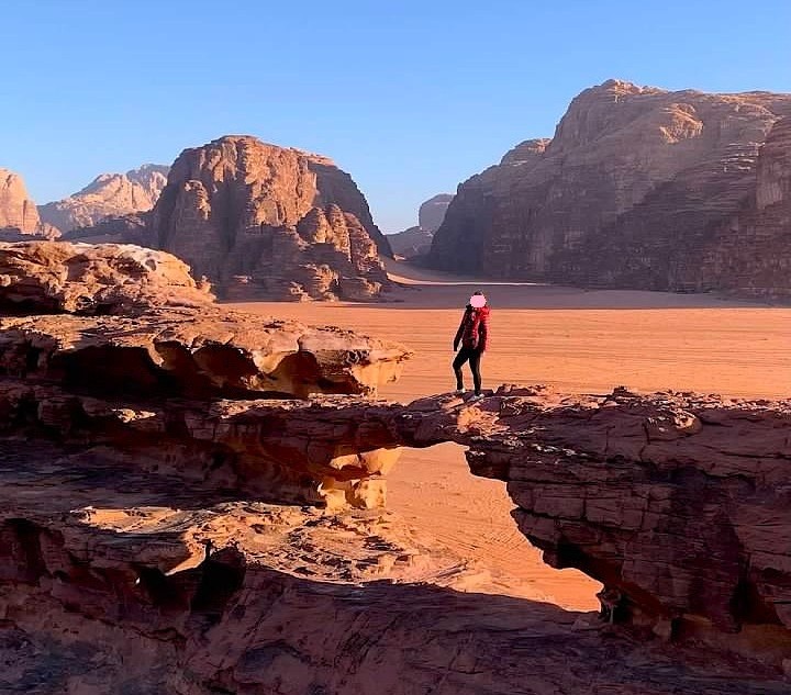 瓦地伦Wadi Rum,及“月亮谷”,红色沙地在日落时显示出如红酒般颜色,因而也有“酒红色山谷”之称。