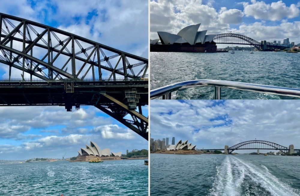 “歌剧院在桥下”,是我们乘坐“观赏悉尼著名景点游轮”时拍摄到的。
