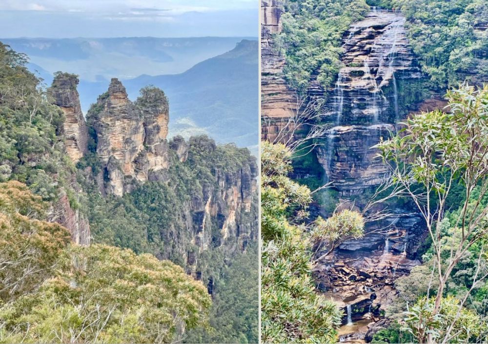 蓝山国家公园,悉尼以西80来公里。溪流、瀑布、悬崖、森林……左图是著名景点"三姐妹峰"。