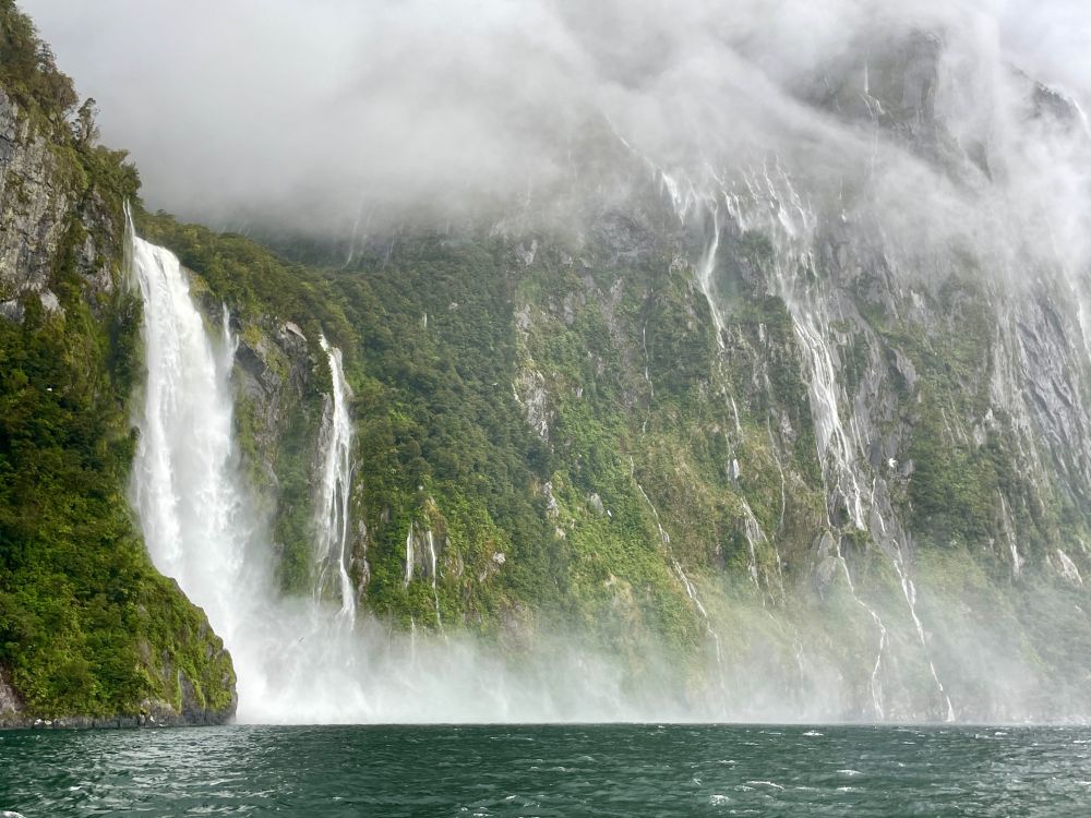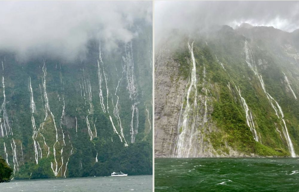 乘坐米尔福德峡湾游船观赏悬崖、海湾,是新西兰天花板级旅行项目。能欣赏到“千瀑万流狂下悬崖峭壁”奇观惊景,还是得碰点运气。