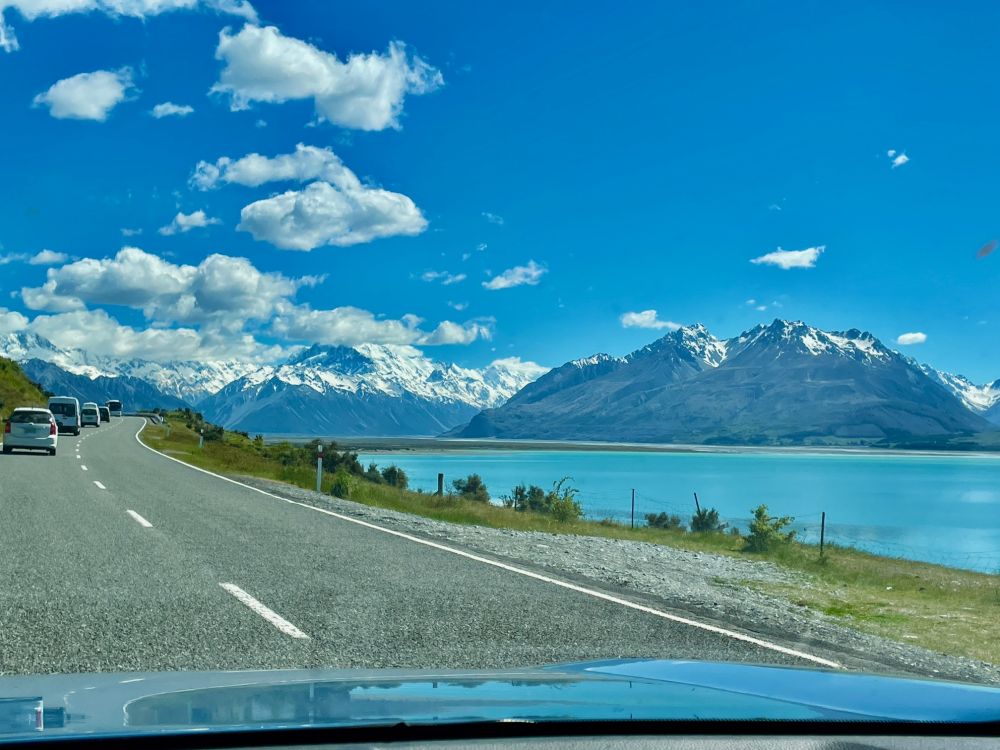 首先入我们眼帘的是普卡基湖Lake Pukaki,一个冰川堰塞湖。