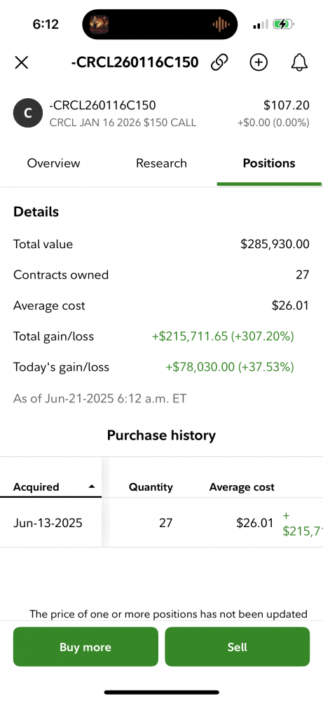 CRCL leaps 创了最快翻倍速度will let it run,一星期赚了36万