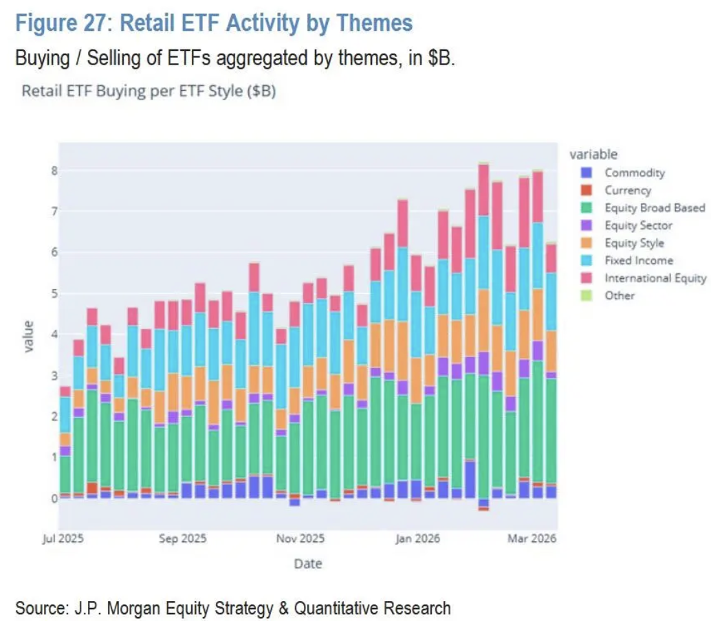 伊朗战争的爆发打破了美国散户投资者持续逾一年的逢跌必买惯性。摩根大通最新零售雷达报告显示,散户群体正出现持续性疲软迹象,这是自该行追踪以来极为罕见的信号。